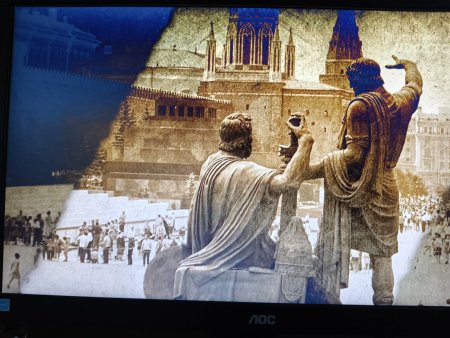 Силуэт Минина и Пожарского прочитывается как метафора сплочённости и гражданской солидарности. Кузьма Минин и князь Дмитрий Пожарский возглавили народное ополчение в Смутное время (в начале XVII века), объединив людей разных сословий для освобождения Москвы от иноземных интервентов -поляков и шведов.